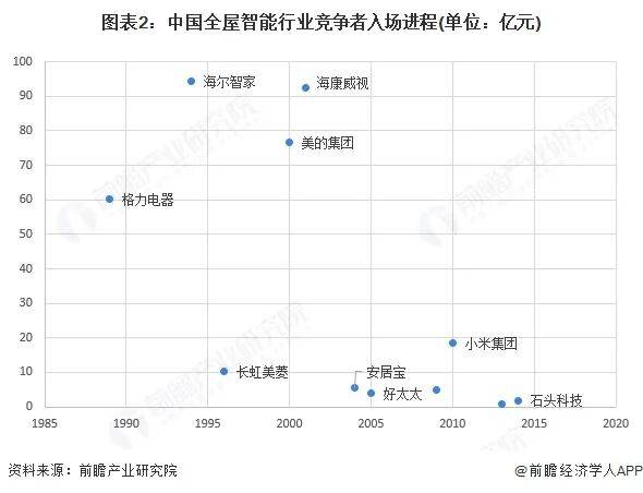 从中邦全屋智能行业竞赛者入场历程来看,格力电器自20世纪90年代以前最早进入全屋智能行业;其他企业组织进入全屋智能行业的年光较众纠集正在2005年前后。从注册资金周围来看,海康威视和海尔智家注册资金相对较高,均横跨90亿元。